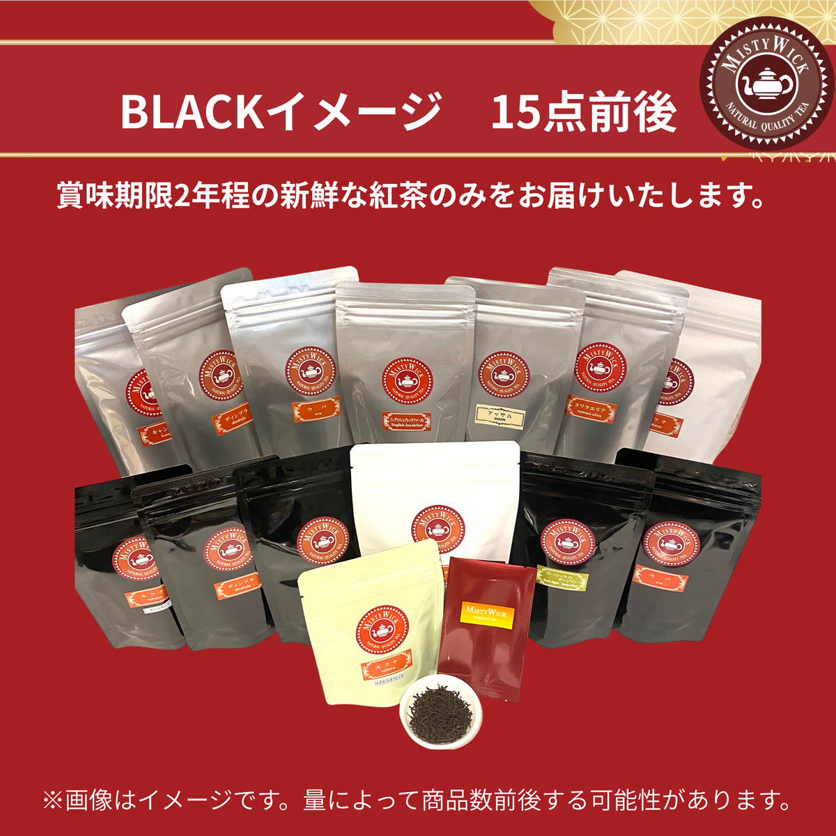 紅茶の福袋 【送料込】《BLACK》(茶葉)27,000円相当 販売価格: 15,000円(税込み) 会員価格 (税込み) 通常価格 (税込み) 在庫 商品コード JANコード 数量 - + カートに入れる 販売期間 2025/11/21 00:00~2026/01/25 23:55 福袋は福袋以外の商品と同時購入出来ません。ご希望の際は別途ご注文ください。※発送期間について①12月20日(23時59分)までのご注文 → 年内発送 ②12月21日以降のご注文 → 1月5日以降順次発送画像はイメージです。※福袋に茶器などは含まれません。※茶葉の種類はイメージ画像と異なる場合がございます。